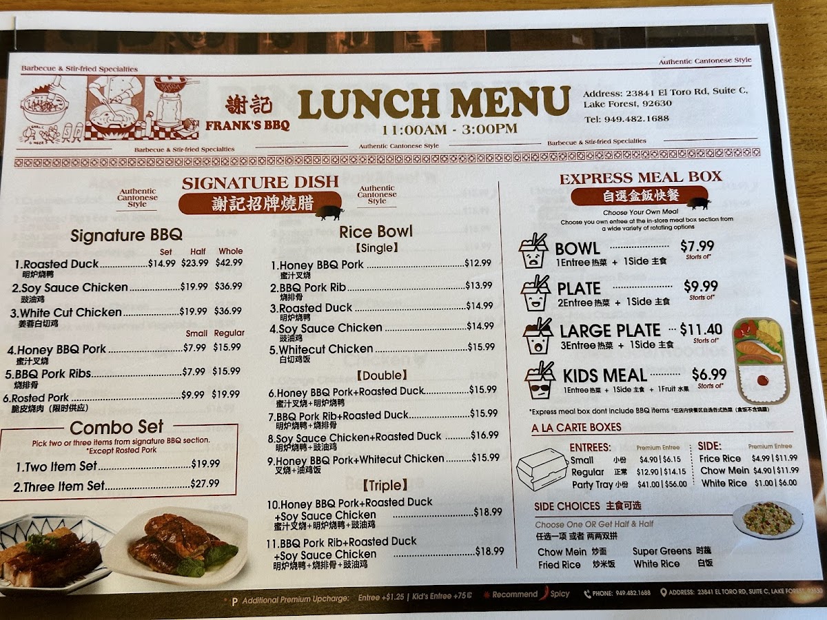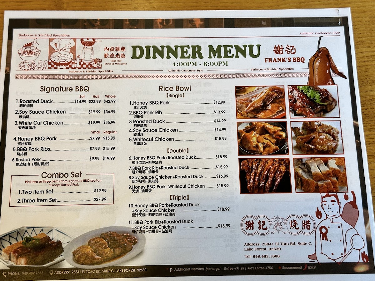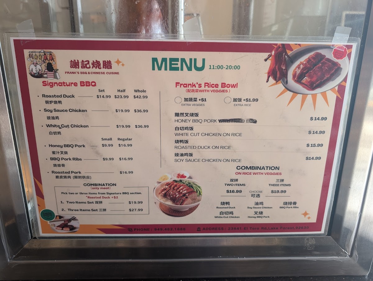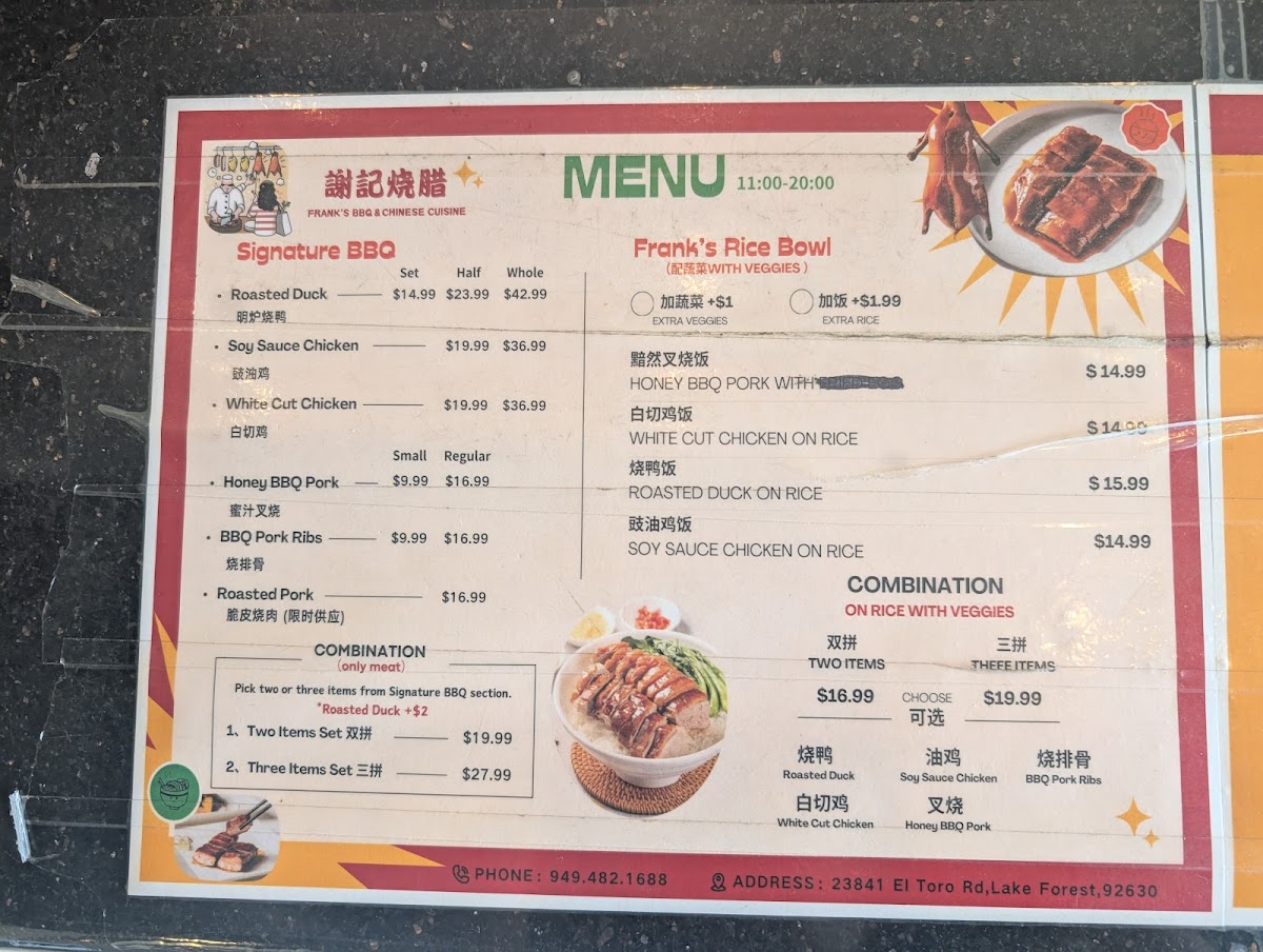 Welcome to Frank's BBQ & Chinese Cuisine, an exceptional eatery nestled in Lake Forest, California, where the vibrant aromas of traditional Cantonese BBQ and expertly crafted Chinese dishes converge. A hidden gem located at 23841 El Toro Rd, this restaurant is a must-visit for food enthusiasts craving authentic Asian flavors.